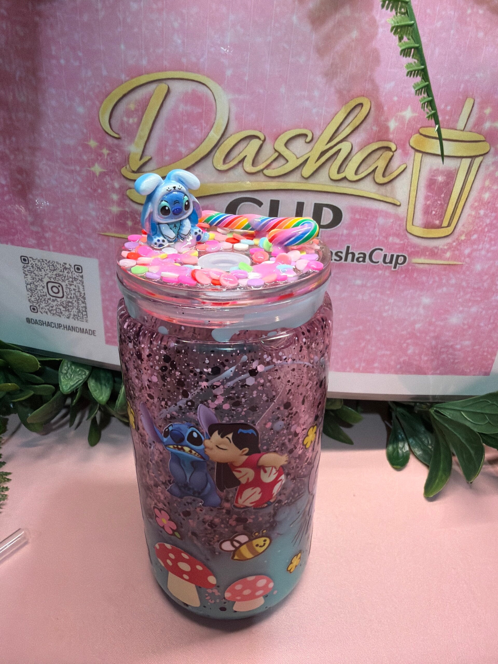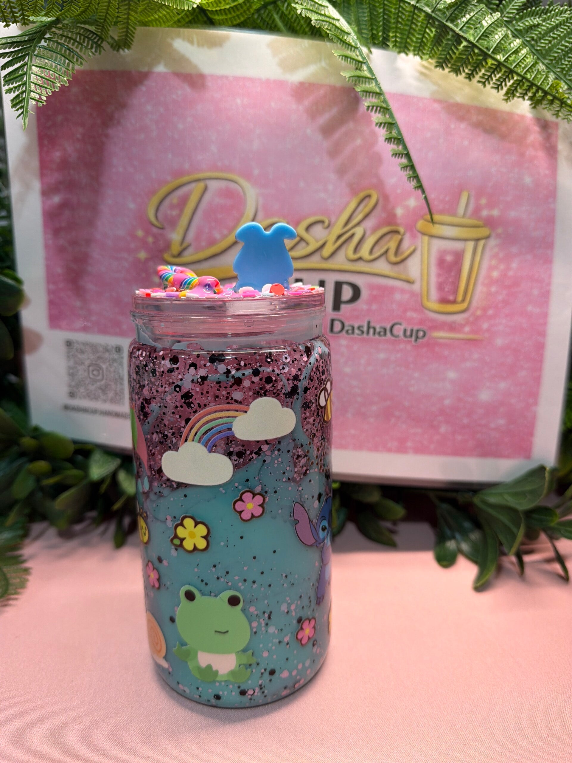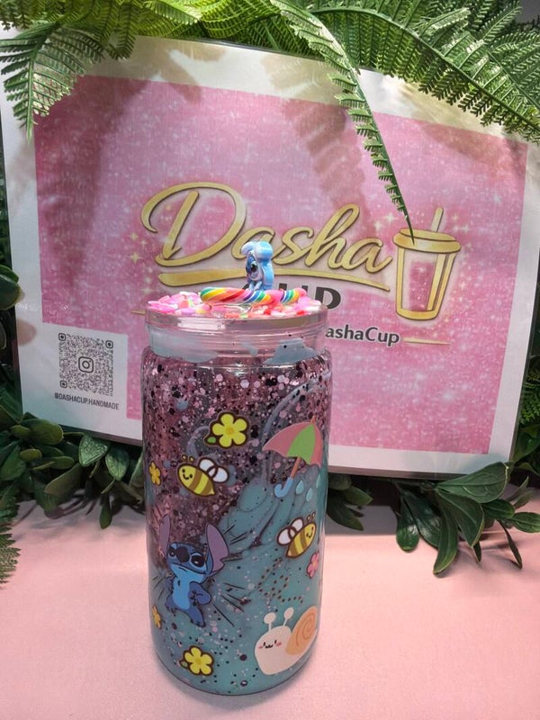 Un diseño lleno de color, ternura y fantasía. Este vaso combina glitter, tonos pastel y detalles divertidos con un estilo inspirado en la amistad, la dulzura y ese toque travieso que tanto encanta. Perfecto para quienes aman lo adorable pero con mucha personalidad.