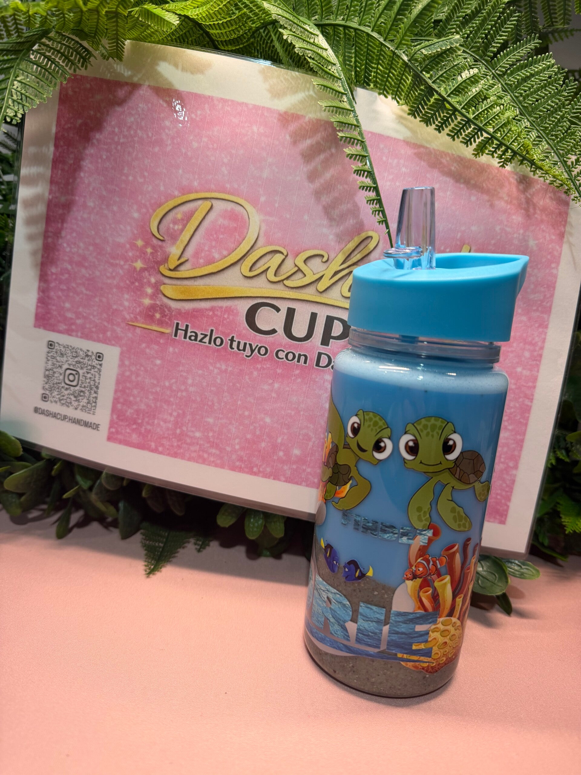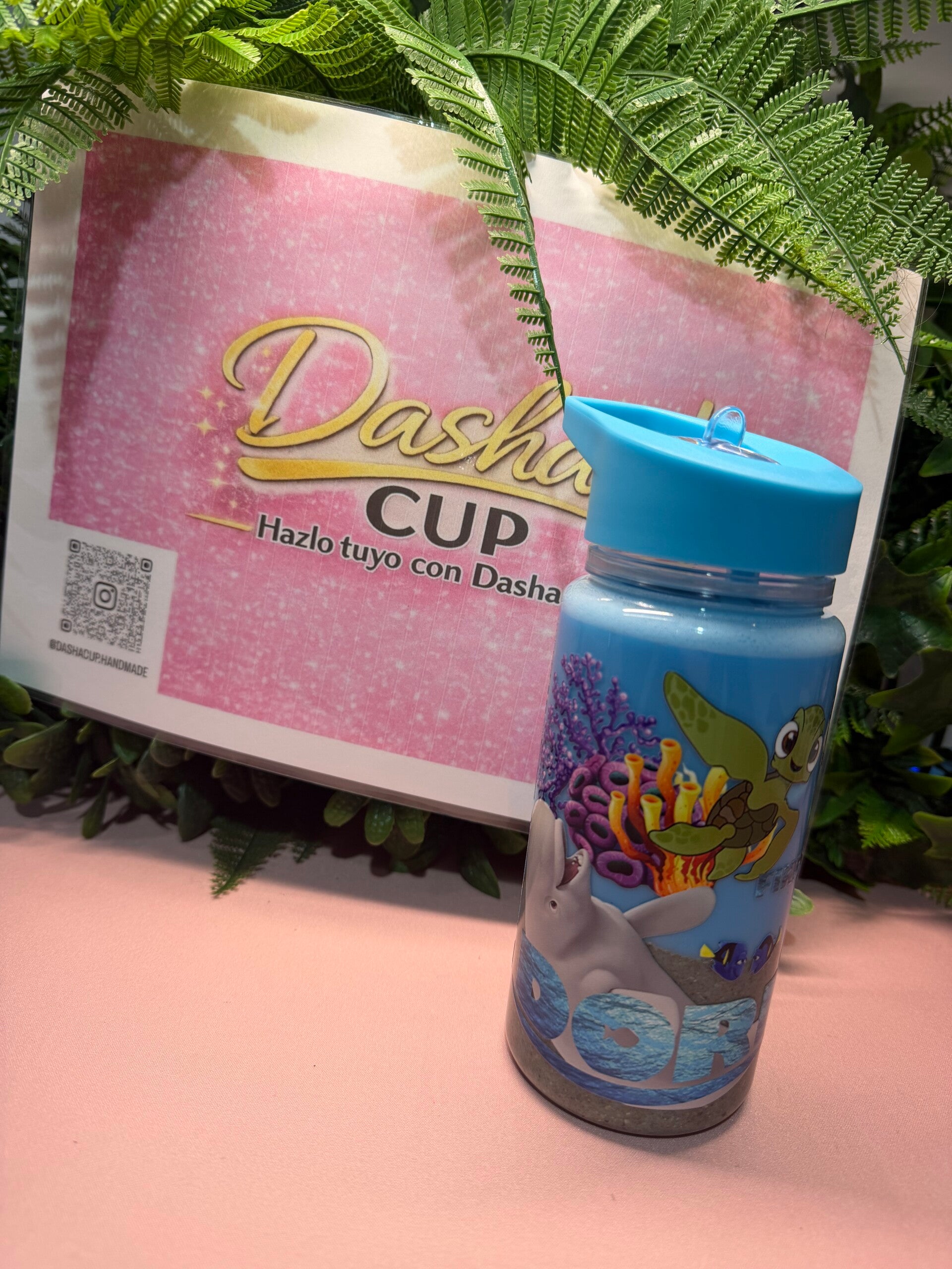 Nuestro vaso infantil personalizado con diseño marino está listo para acompañar a los peques al cole, al parque o a cualquier aventura. Con su tortuguita exploradora, peces tropicales y fondo oceánico, beber agua nunca fue tan divertido.