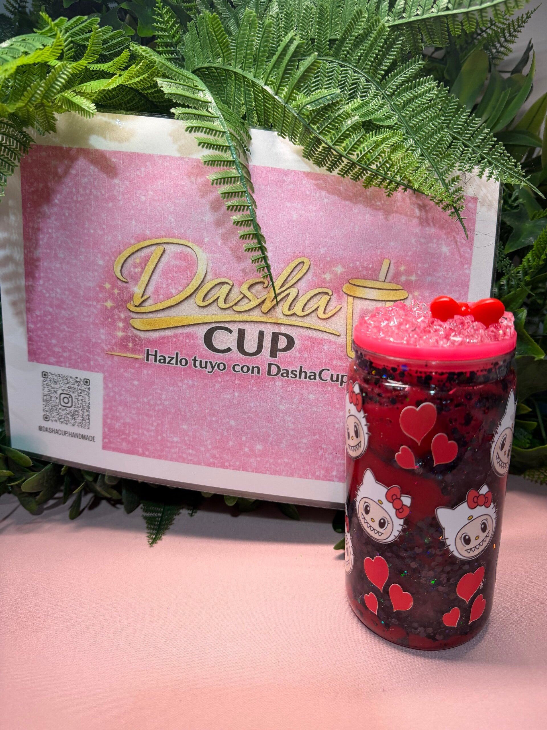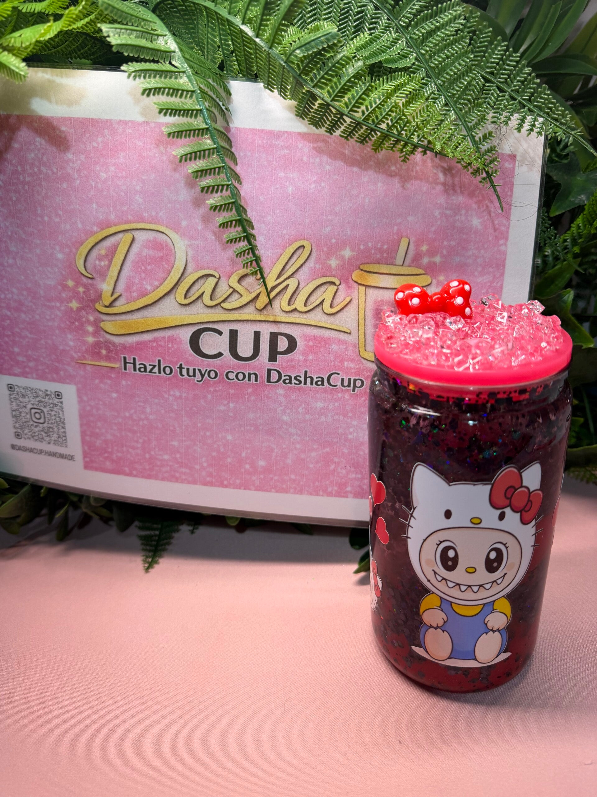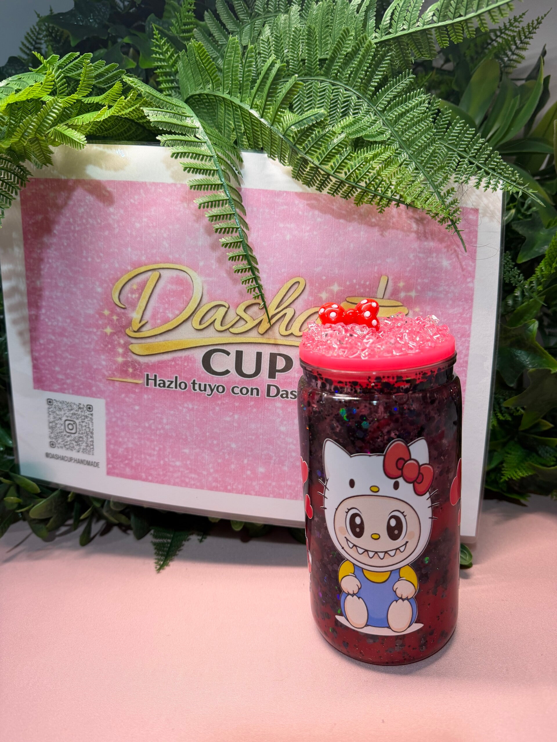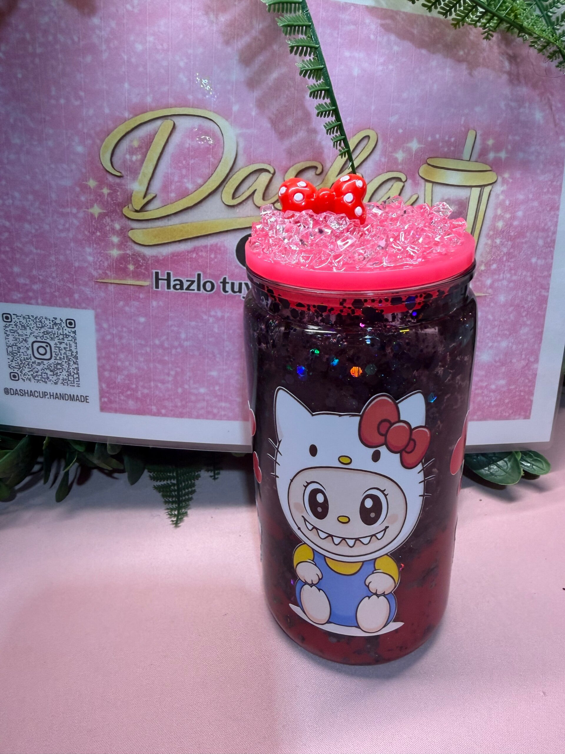 Diseño kawaii en tonos rosas con glitter y detalles brillantes que hacen que cualquier bebida sepa mejor (comprobado científicamente por fans de lo cute 😜).